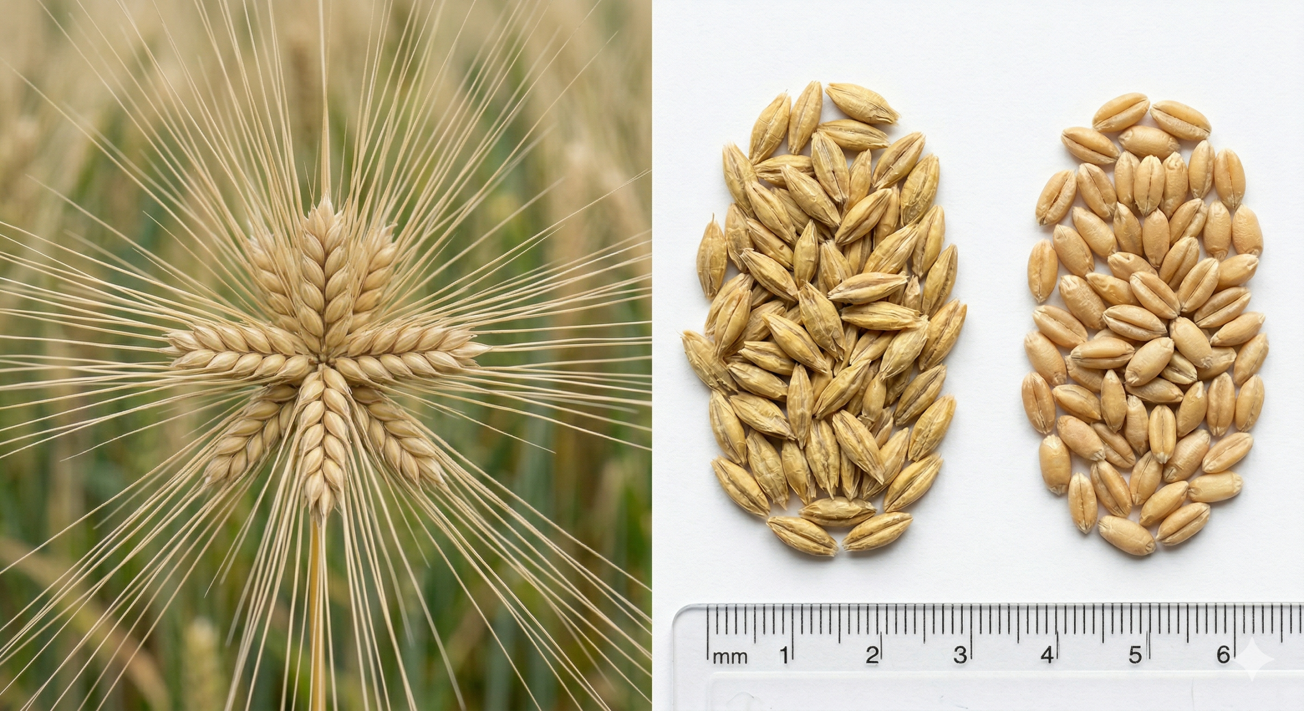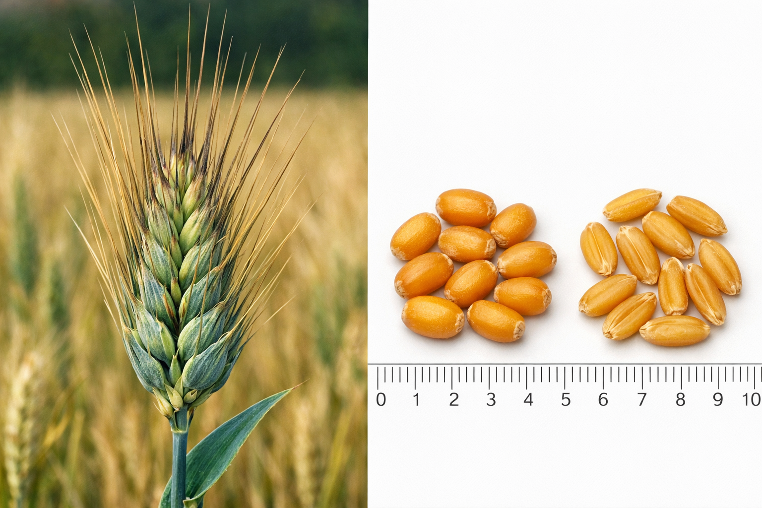 Hybrid mellom durumkveite og villbygg med gyllen tone og mild sødme.