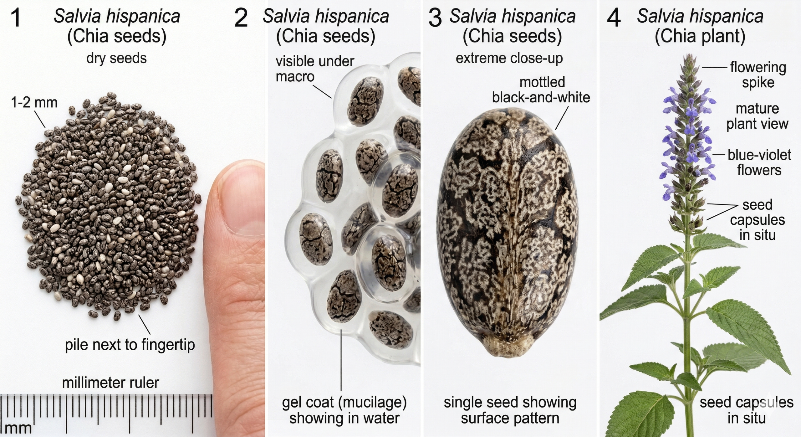 | Chia | Frø | 16–22% | Svært høgt | Utan gluten |