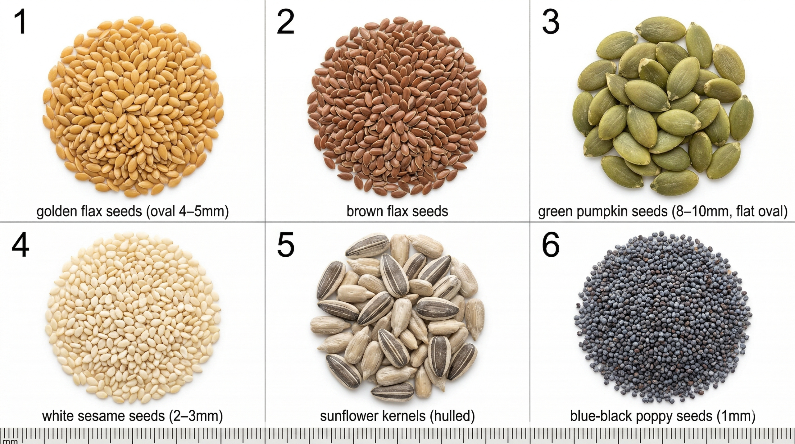 Linfrø, solsikke m.m. for tekstur og saftigheit.