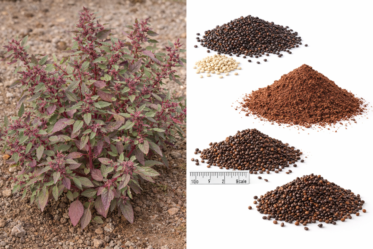 Mørkt høglandsfrø med jordleg smak og god næringsprofil.
