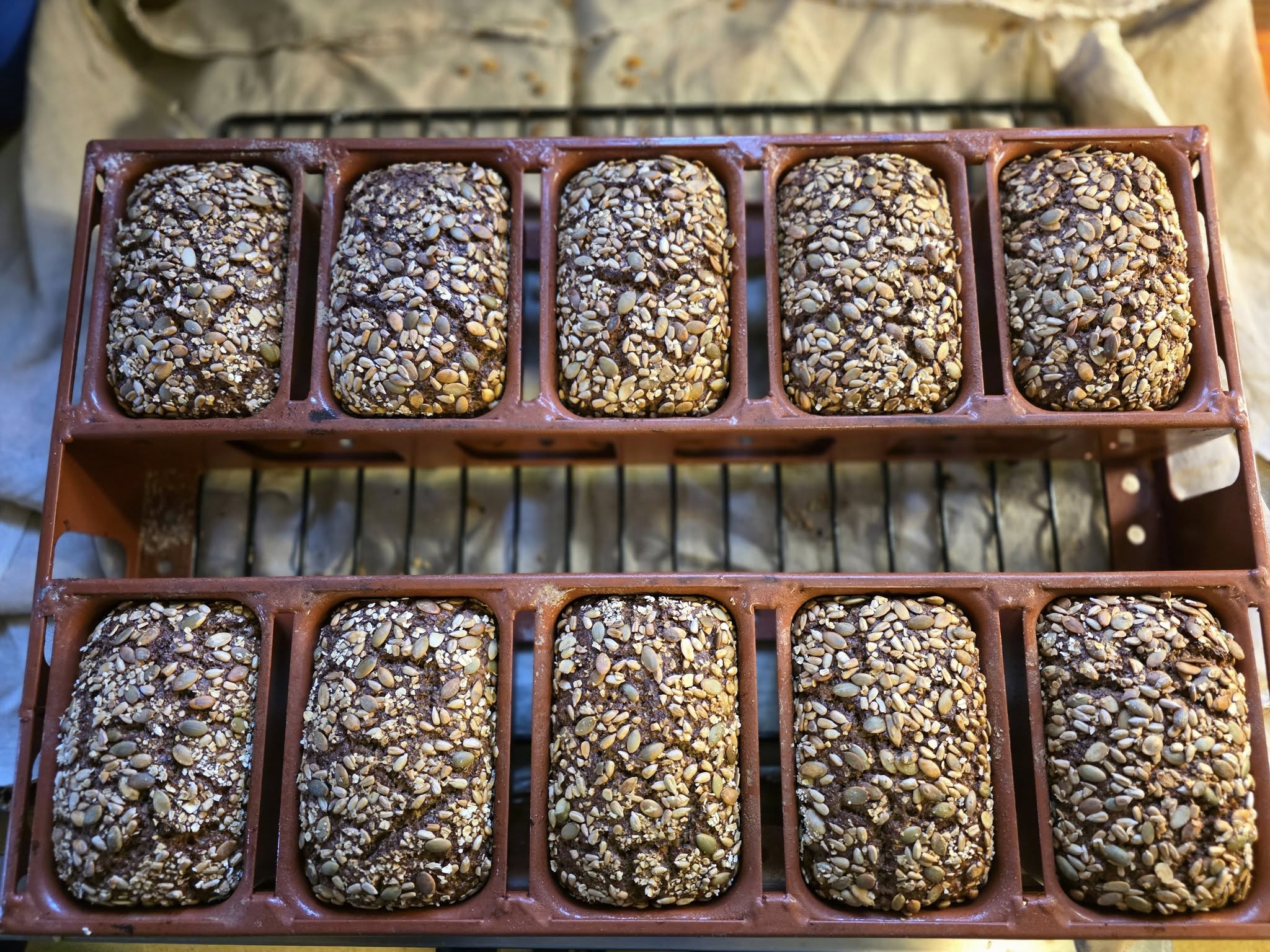 Før steikinga rullar eg dei raust i gresskarfrø og solsikkefrø, for endå rikare smak og ei vakker, sprø skorpe.